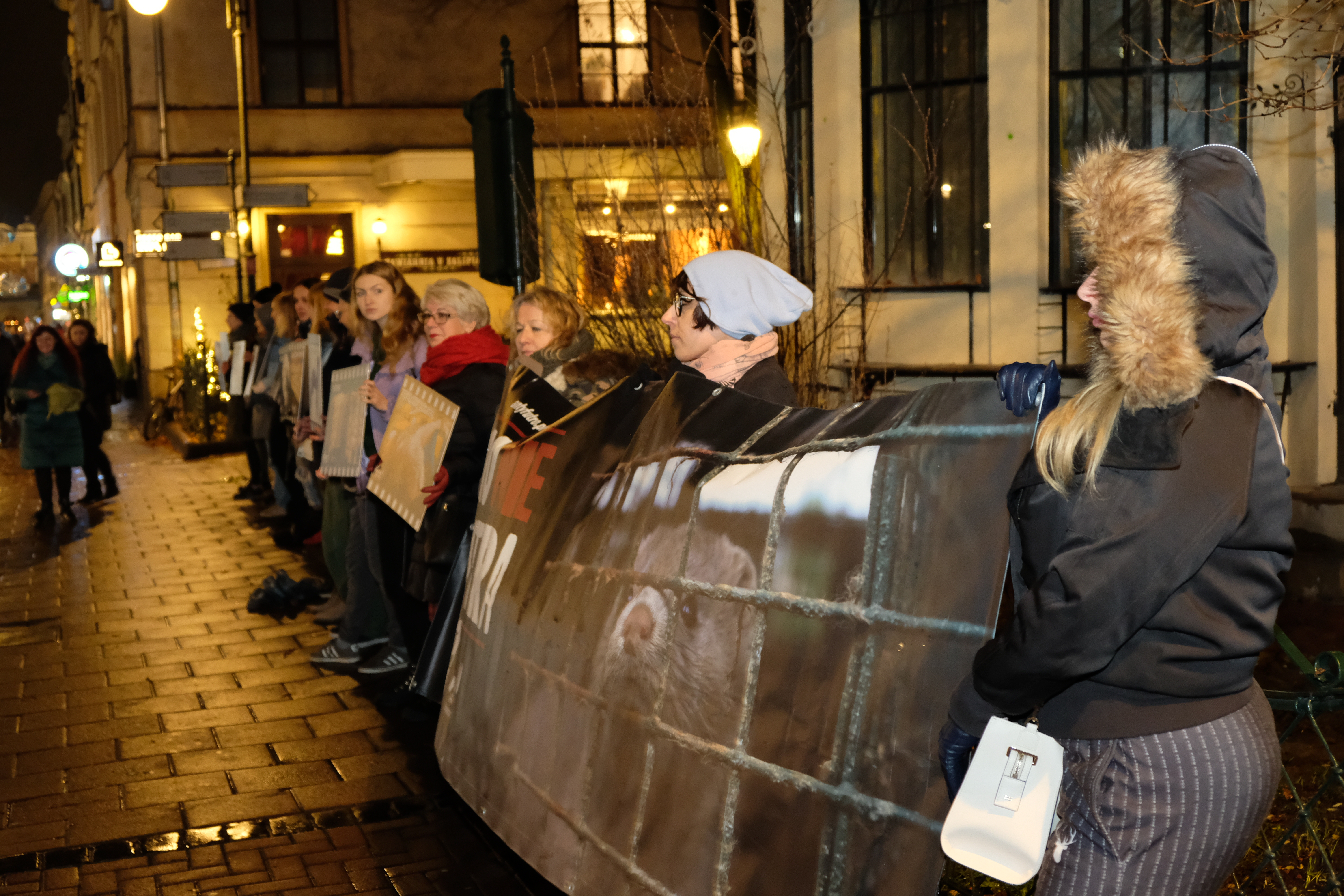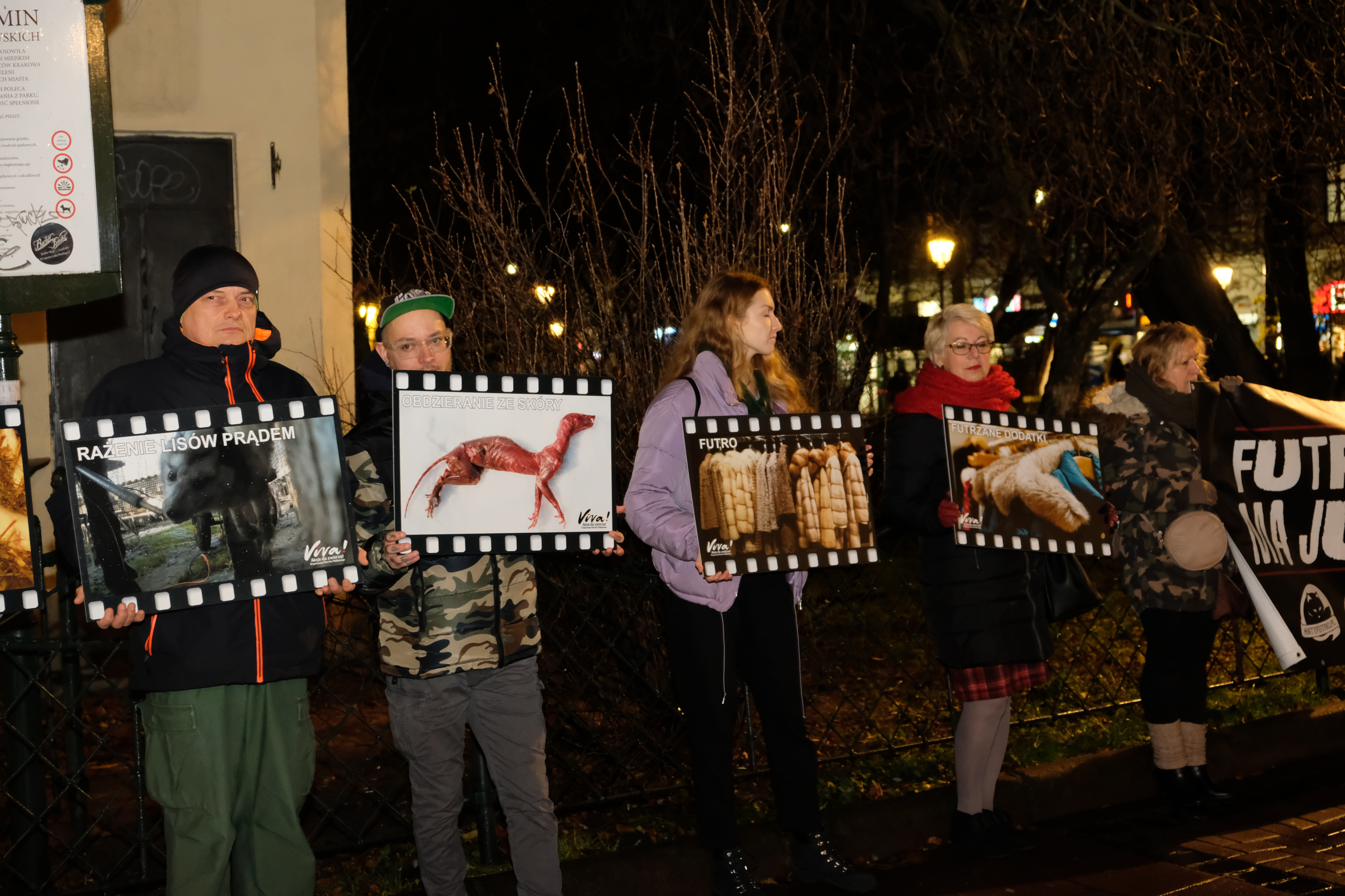 Viva Akcja dla zwierząt przeprowadziła wczoraj w Krakowie w piątkowy wieczór protest. Aktywistki i aktywiści mówili o potrzebie zaprzestania hodowli zwierząt futerkowych. Protestowali przeciwko zabijaniu rocznie około 10 milionów zwierząt głównie norek, lisów i szynszyli poprzez porażenie prądem, zagazowanie lub uszkodzenie mechaniczne mózgu. Zapraszali do przyłączenia się do wspólnej pracy na rzecz cierpiących zwierząt. Pozdrawiamy aktywistów, którzy od wielu lat walczy o wprowadzenie zakazu chowu zwierząt na futra w Polsce!