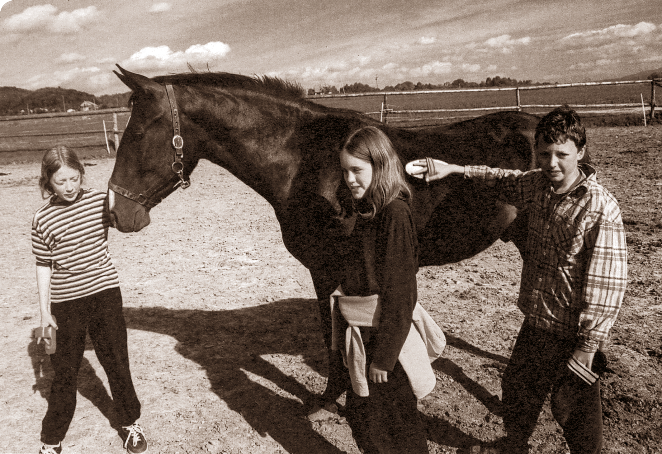 każdej sposobności. Nie miało znaczenia, czy miał towarzystwo innych koni, trawę, siano. Pegaz po prostu chciał być za ogrodzeniem, chciał być wolny. Wszystkie przemoczone skarpetki podczas sprowadzania koni z pastwiska w strugach deszczu, zabryzgane błotem samochody i szkła okularów nauczyły mnie odpowiedzialności.