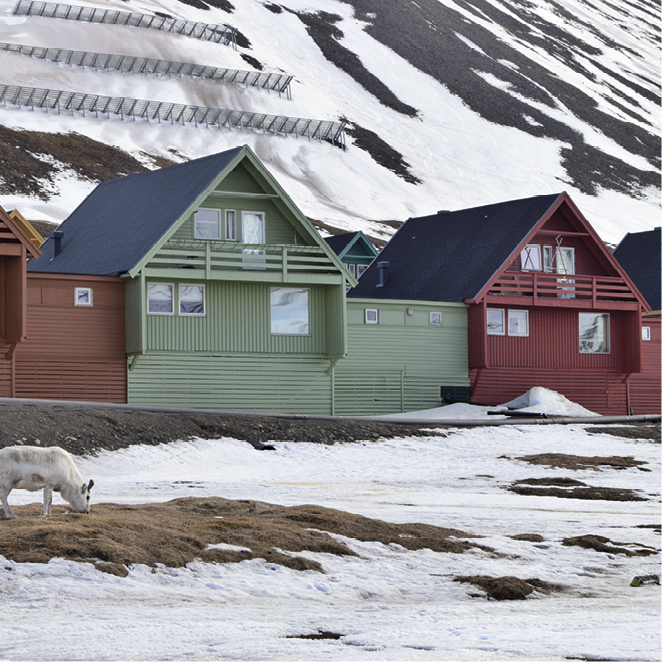 Archipelag Svalbard w sześćdziesięciu procentach pokrywają lodowce. Tak jak wspomniałam, nie rośnie tutaj ani jedno drzewo, więc mieszkańcy Barentsburga, rosyjskiej osady górniczej, czasem malują je na budynkach. Na całym archipelagu znajduje się kilka stacji polarnych i tylko trzy miasteczka – opuszczona rosyjska osada górnicza, miasto widmo zwane Piramidą, zamieszkana rosyjska osada górnicza, czyli wspomniany już Barentsburg, oraz Longyearbyen, z ramienia Norwegii centrum administracyjne Svalbardu. Longyearbyen nieformalnie nazywane jest stolicą Svalbardu, a ja mieszkam cztery kilometry za miasteczkiem, czyli na końcu wszystkiego. To chyba jedyna stolica świata, gdzie wzdłuż głównej ulicy pasą się renifery.