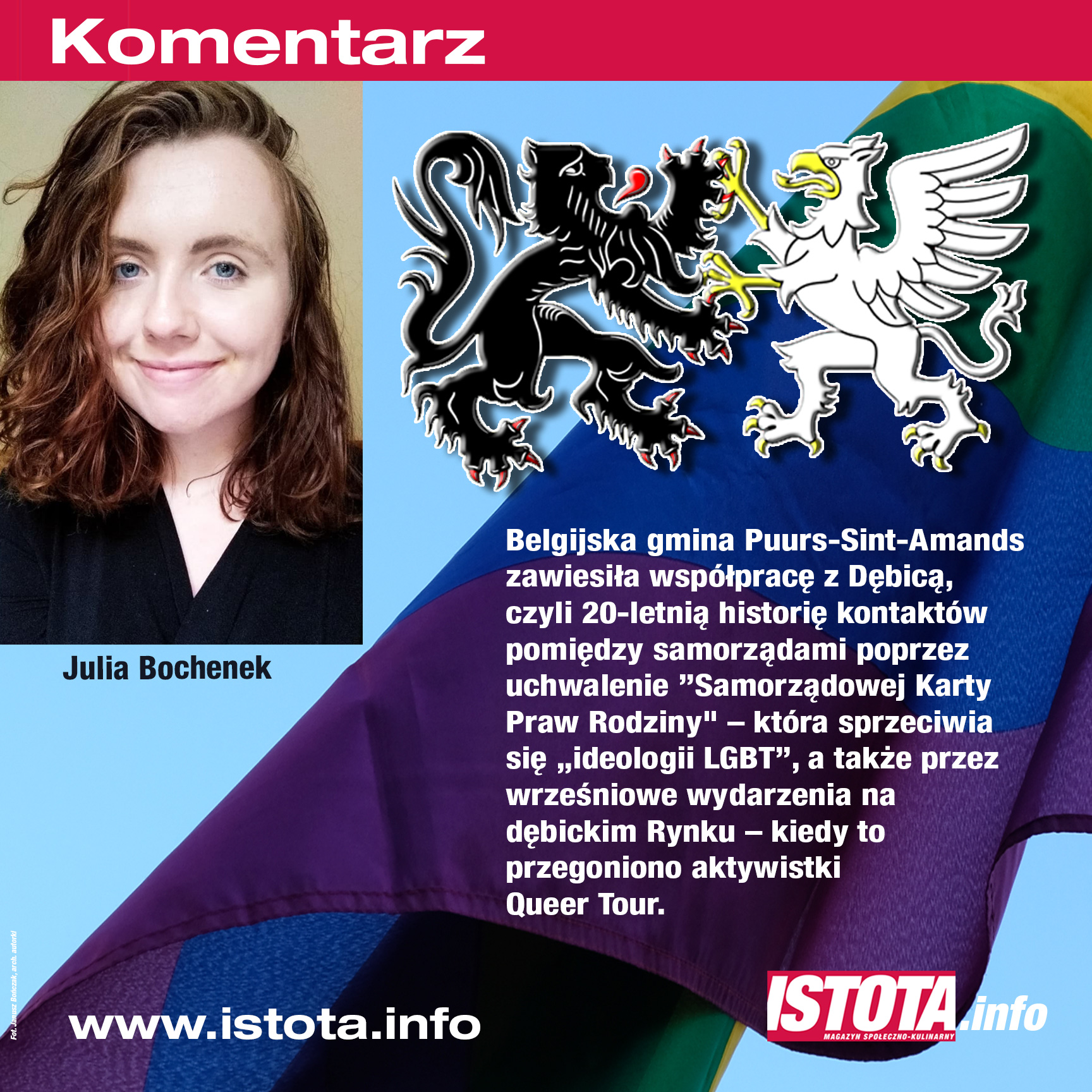 (Belgijska gmina Puurs-Sint-Amands zawiesiła współpracę z Dębicą, czyli 20-letnią historię kontaktów pomiędzy samorządami poprzez uchwalenie „Samorządowej Karty Praw Rodziny” – która sprzeciwia się ideologii LGBT, a także przez wrześniowe wydarzenia na dębickim Rynku – kiedy to przegoniono aktywistki Queer Tour  – red.).