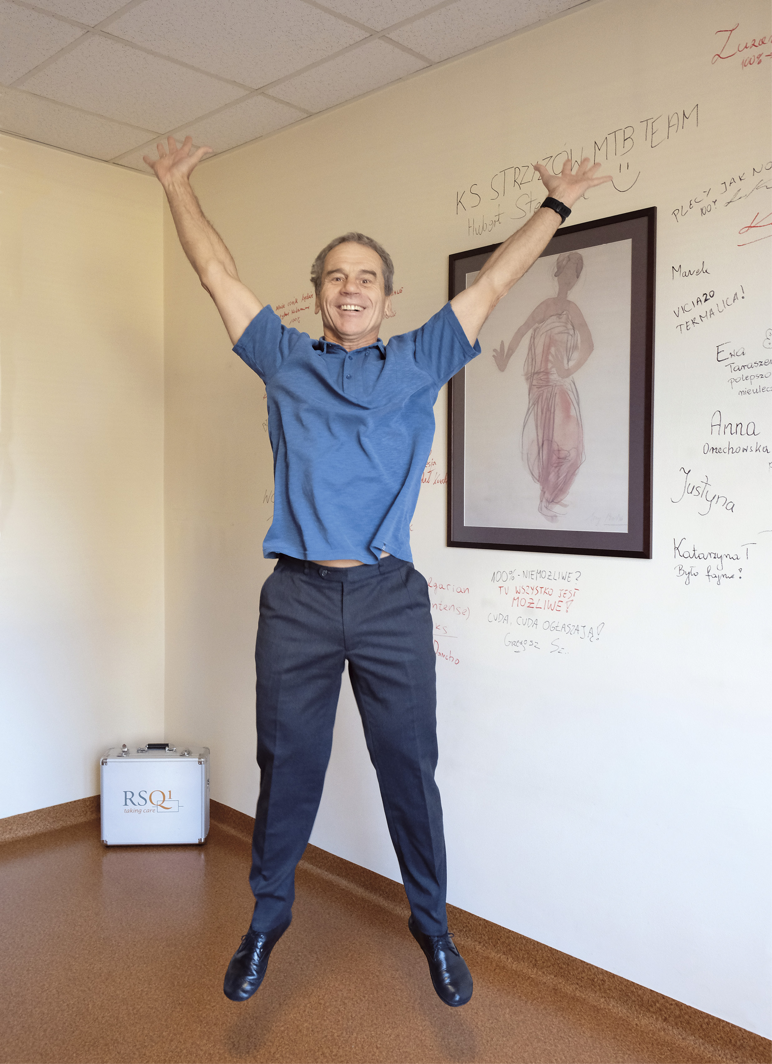 Historia zaczęła się dwa lata przed opisaną powyżej pierwszą wizytą w naszym gabinecie Solvano. Lekkie dolegliwości w barku bywały uciążliwe, ale nie przeszkadzały w codziennych aktywnościach, w tym w treningach siłowych z kettlebell dwa razy w tygodniu. Podstawą strategii leczniczej była popularna koncepcja „Samo przyszło, samo przejdzie”. Po 10 miesiącach ból, a przede wszystkim ograniczenia zakresu ruchu zaczęły wyraźnie utrudniać życie.