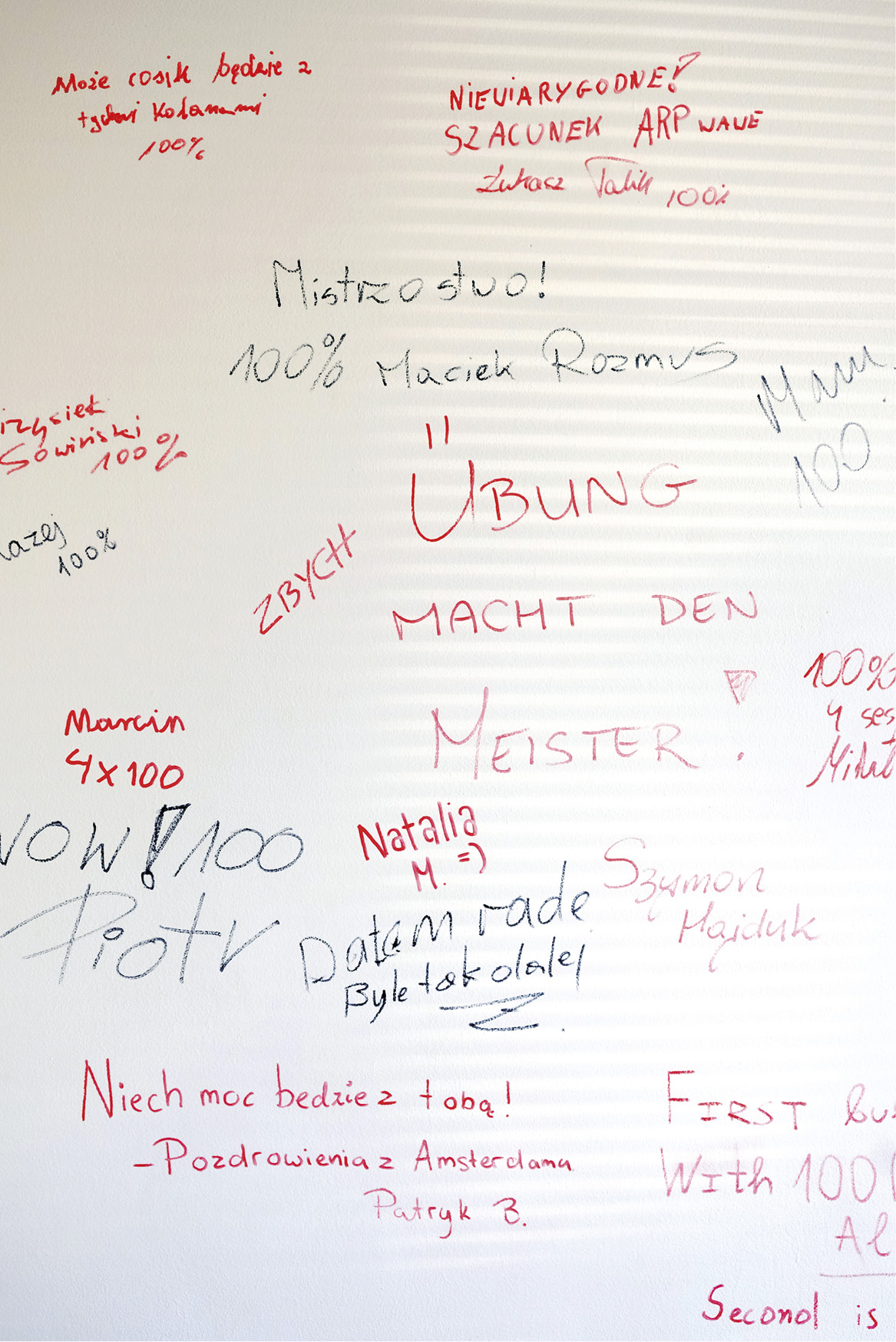Napisy pacjentów na ścianie gabinetu Solvano.