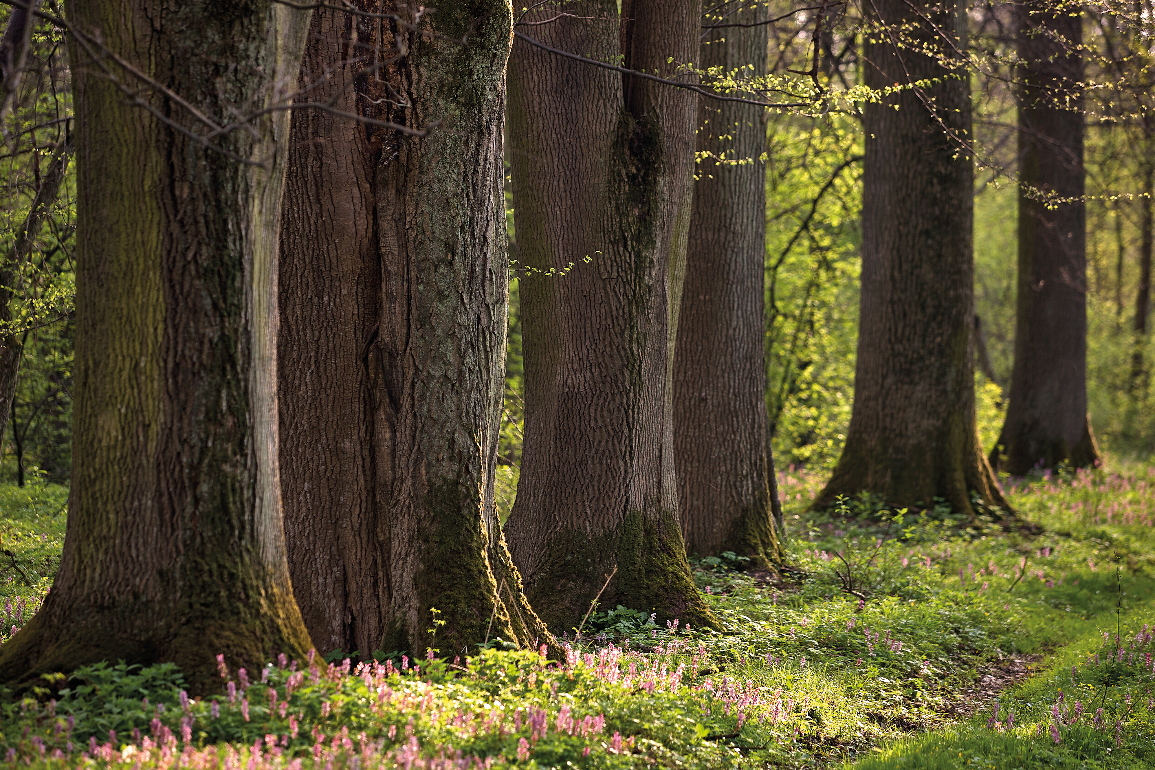 – Idziesz przez las. Przed Tobą stary fragment puszczy, jeszcze pierwotnej, jeszcze niezniszczonej, drogą, którą kiedyś jeździli królowie. Wokół kwitną różowe kwiaty. To kokorycz, która łanowo zakwita wczesną wiosną. Gdzieniegdzie pokazują się fiołki i żółte ziarnopłony. Delektujesz się orgią barw wśród prastarych drzew. Zielone pąki buków, grabów i dębów pokazują, że życie znów powraca do lasu.