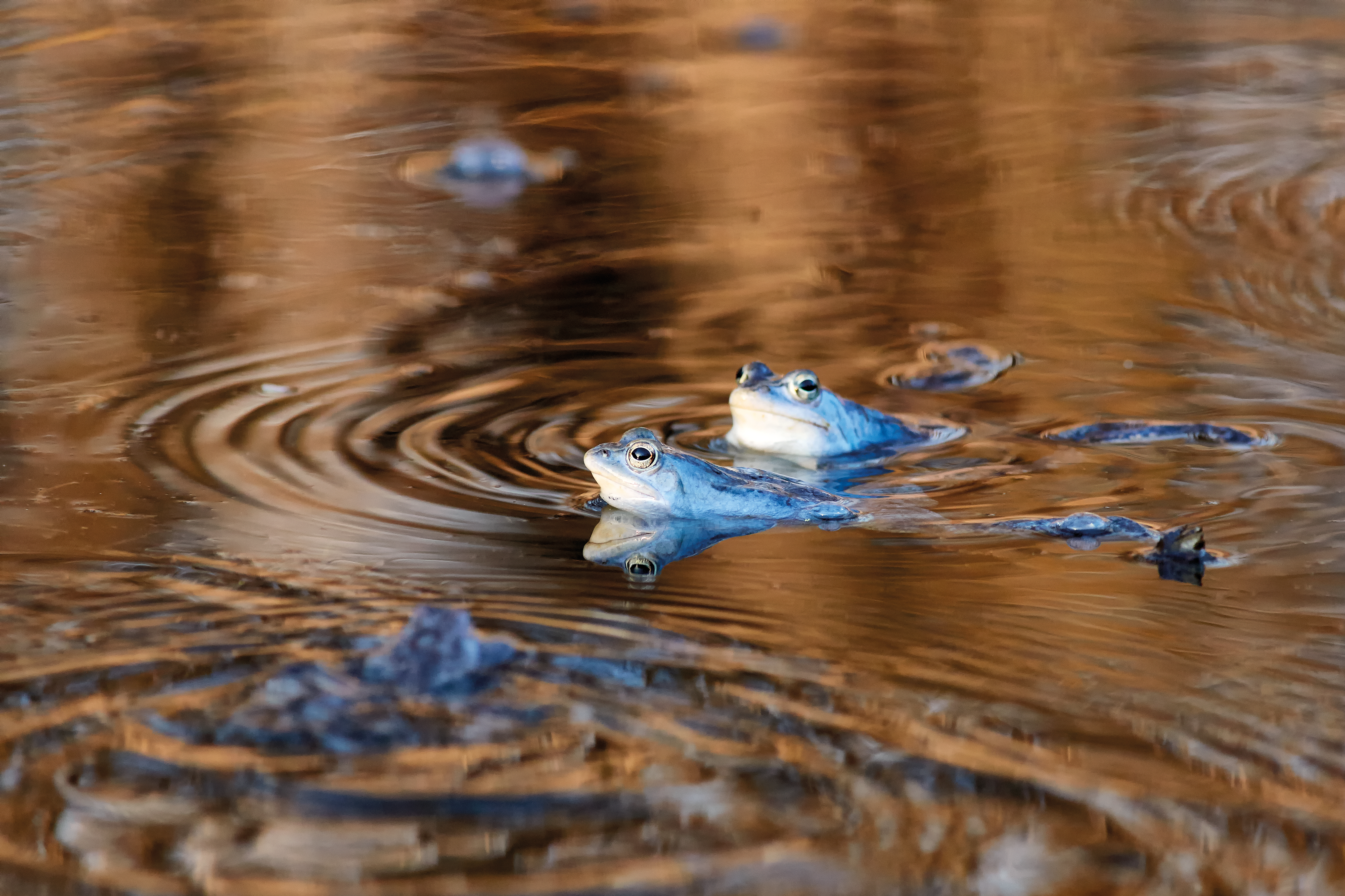 z wody kolejna żabia główka. Mrugasz w zdumieniu oczami… wszak ta żaba jest… niebieska. Czekasz… Po chwili pojawia się ich całe mnóstwo. Są płochliwe, ale nadal czekasz cierpliwie. I zaczyna się odwieczny taniec żabich istot. Polowanie na samiczki, aby spełnić drzemiącą w każdej istocie potrzebę przedłużenia gatunku.