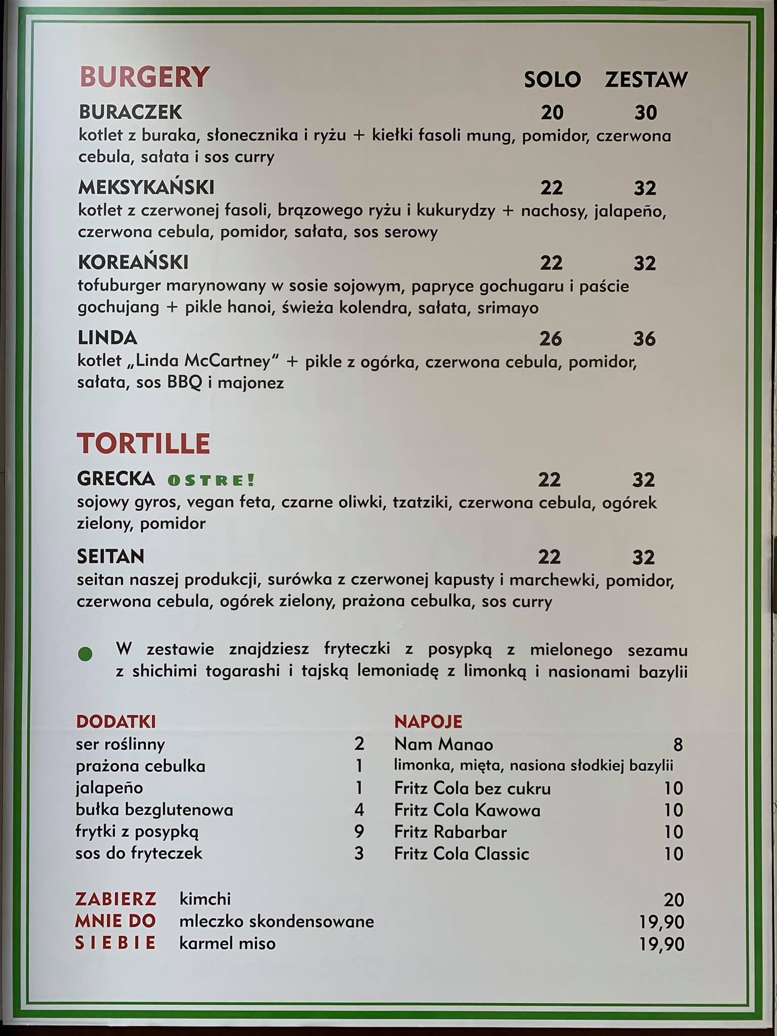 W zestawie znajdziesz burgera Lindę oraz fryteczki z posypką z mielonego sezamu z shichimi togarashi i tajską lemoniadę z limonką i nasionami bazylii.
