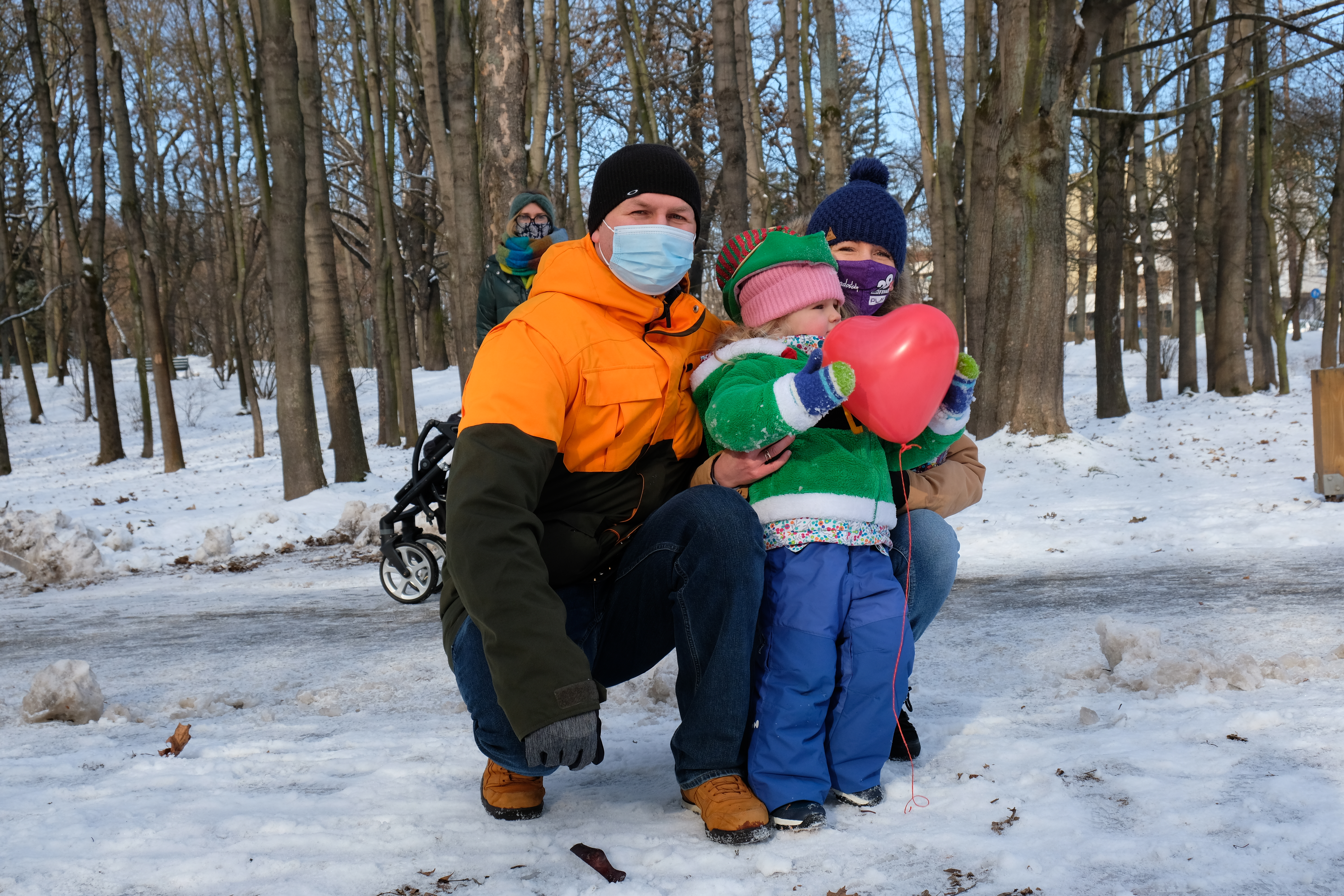 Na zdjęciu Zuzia z tatą Maćkiem i mamą Gosią, a z tyłu ciocia Zuzi.