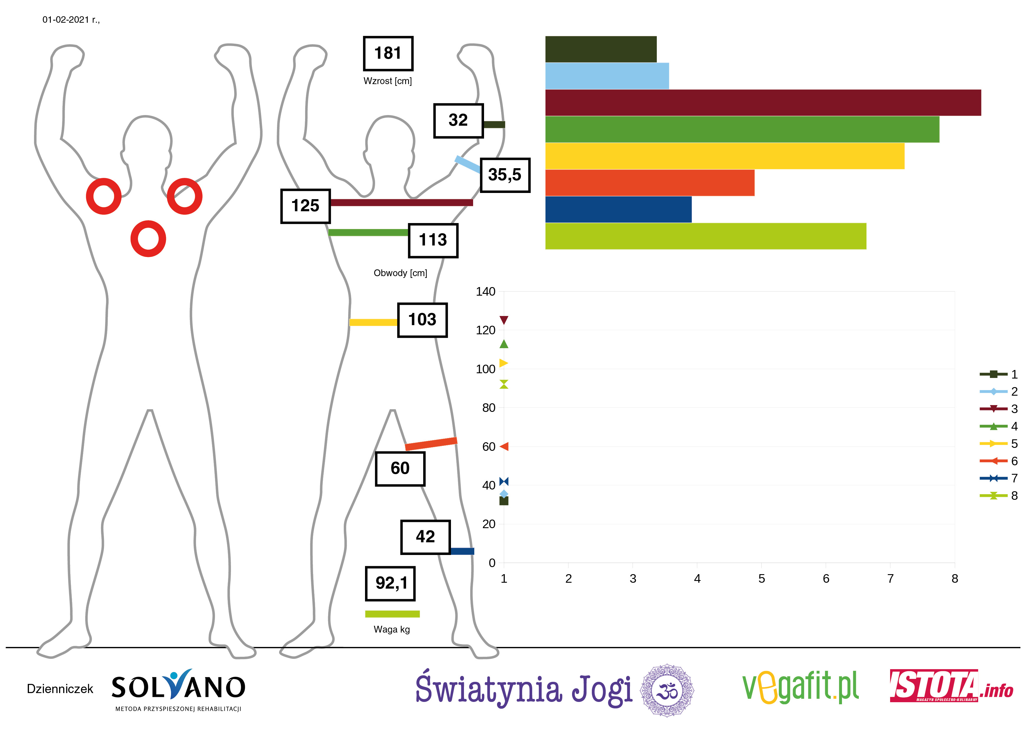 I już po pierwszym treningu. Poniżej zamieszczam wykresy graficzne z danymi pomiarów, które będę aktualizował co tydzień. Jestem bardzo ciekawy jak te wykresy będą wyglądały za parę tygodni 🙂