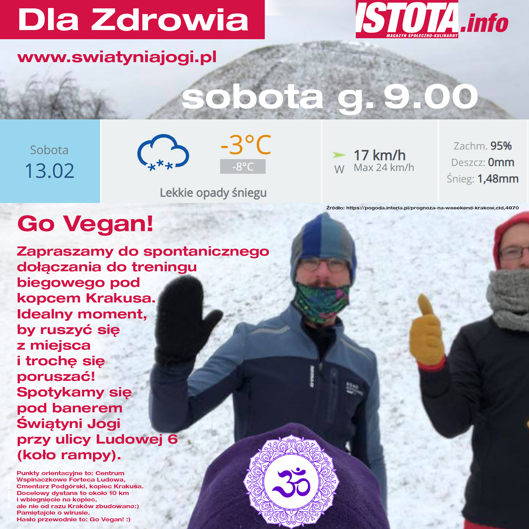 Kolejna energetyczna Sobota ze Świątynią jogi w Krakowie rozpocznie się o godzinie 9.00 pod świątynnymi salami do ćwiczeń przy ulicy Ludowej 6.