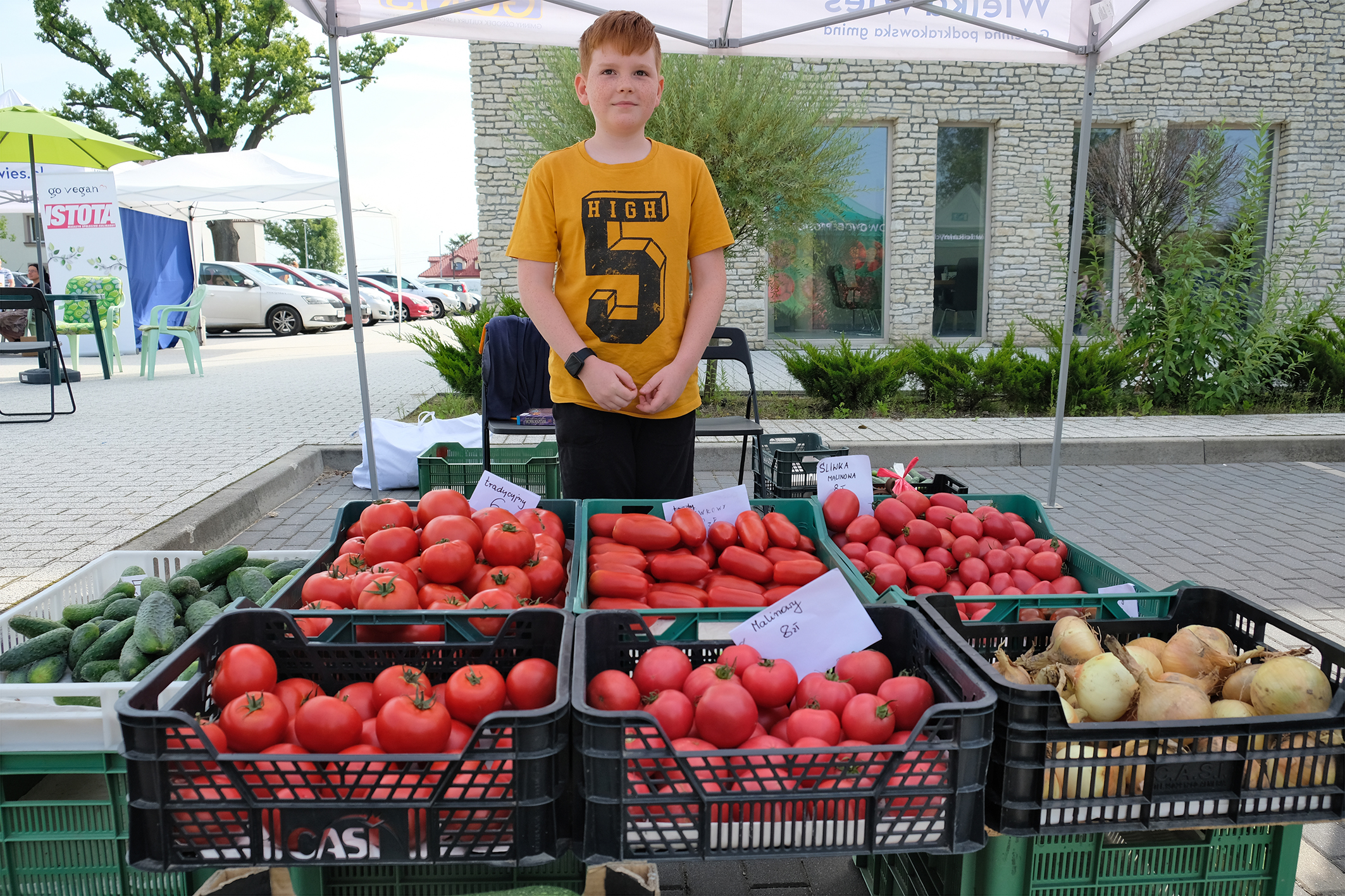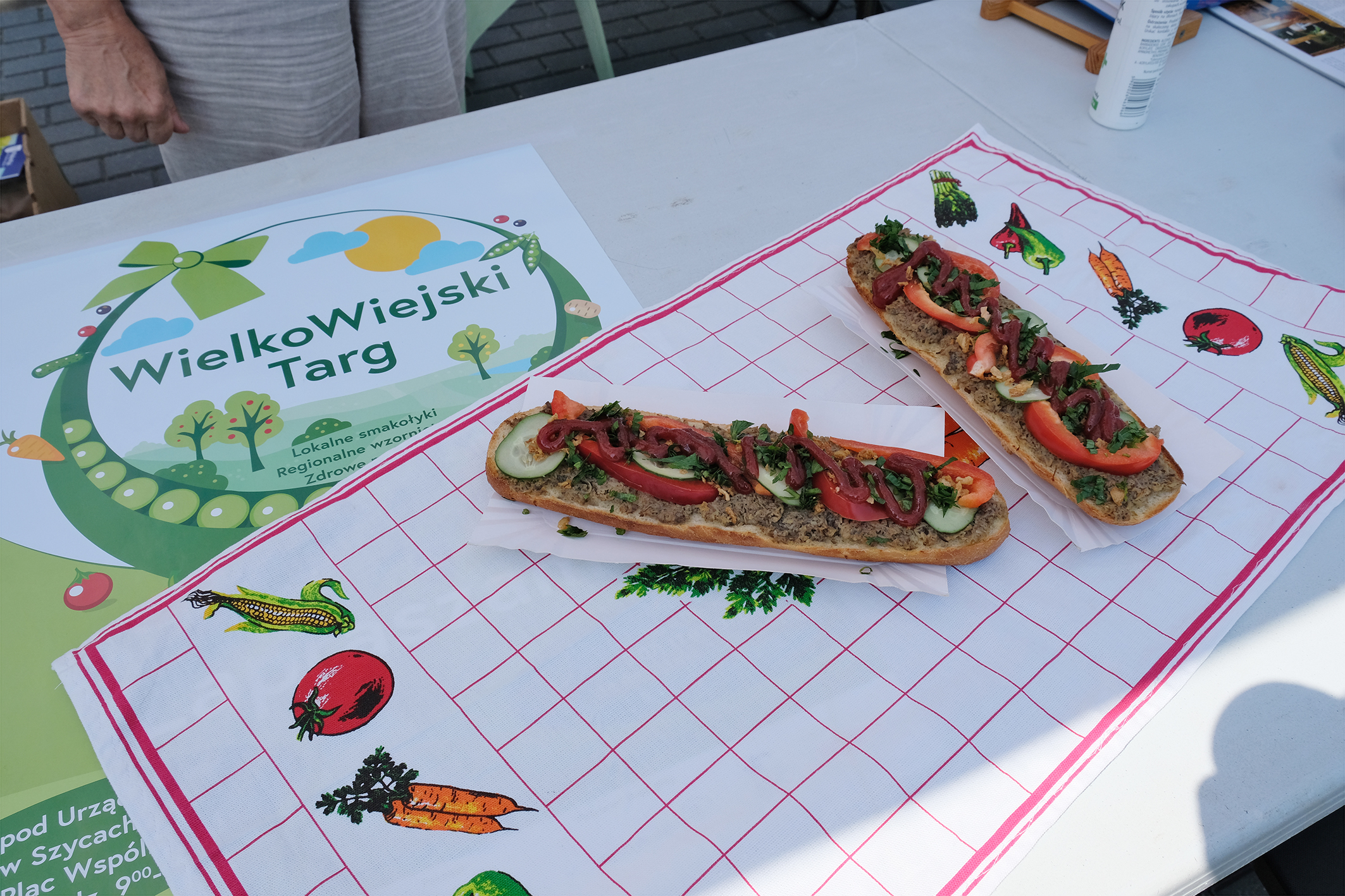 Bardzo dziękujemy za miły czas, jaki spędziliśmy z Państwem podczas kolejnego spotkania Targowego. Choć trwa sezon wakacyjny. Dużo gości zdecydowało się odwiedzić nasz Targ i jesteśmy przekonani, że decyzję tę sobie chwalą. Bo jakżeby mogło być inaczej? Gdzie można nabyć tak wspaniałe produkty? Owoce, warzywa… Zostać poczęstowanym wspaniałym kompotem z czarnych i czerwonych porzeczek u pani Lucynki, napić się znakomitej kawy lub nabyć wspaniałe przetwory…, zjeść pasztet z selera, albo tradycyjny żur. Kupić pachnący chleb…  Nie mówiąc o chrupiących wegańskich zapiekankach od CoolSmak. Nie sposób wyliczyć tych cudownych rzeczy. A przecież nasz WielkoWiejski Targ to nie tylko artykuły spożywcze. Na zdjęciach mogą Państwo podziwiać ułamek rzeczy wykonanych rękodzielniczo, a które można było kupić podczas Targu.  Serdecznie zachęcamy do uczestnictwa i odwiedzenia nas podczas kolejnych Targów już za dwa tygodnie. 28.08 br., wtedy odbędą się Targi dożynkowe. Dziękujemy paniom z KGW Rudawa, za obecność w strojach regionalnych, dzięki którym mogliśmy zapowiedzieć WielkoWiejskie dożynki.