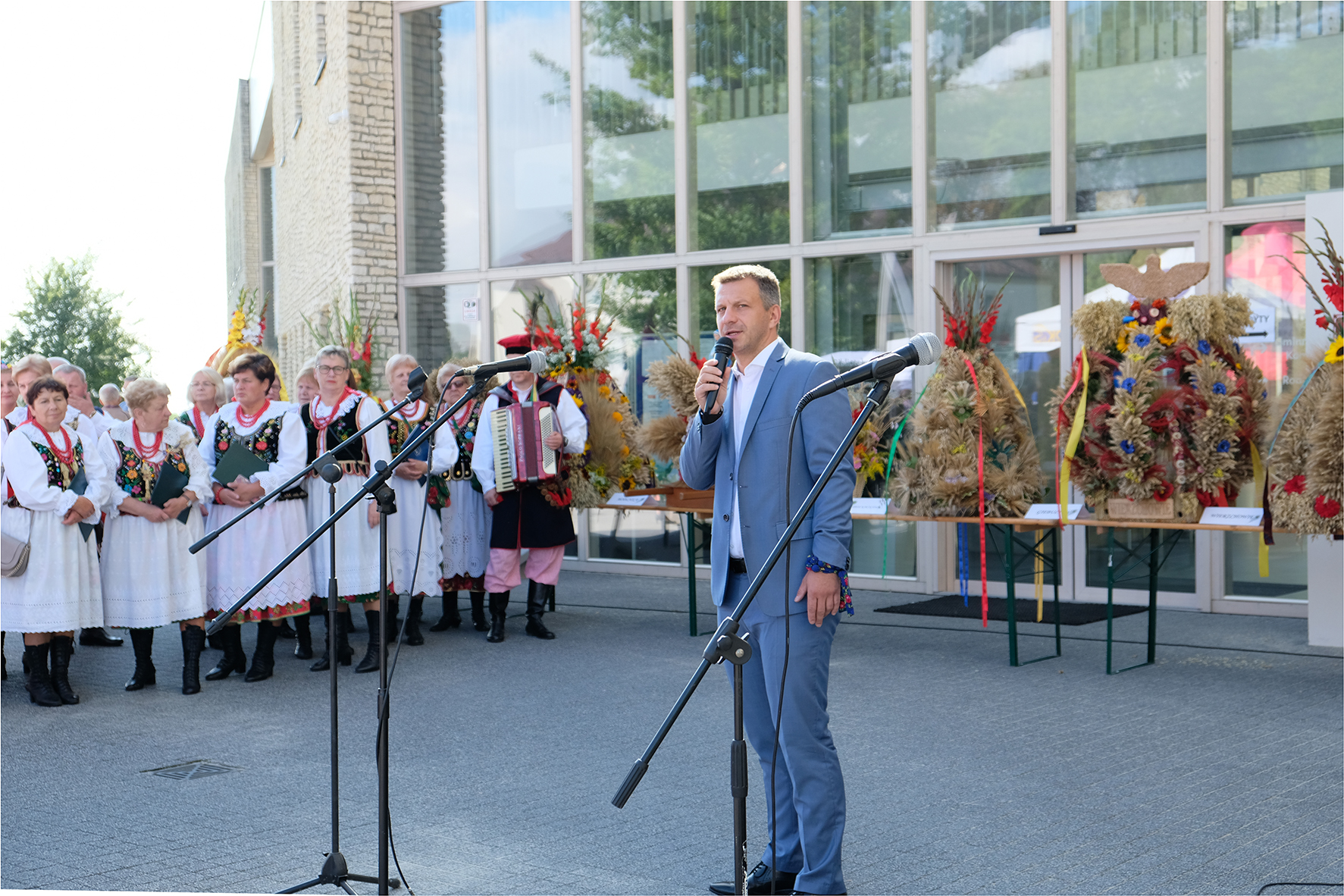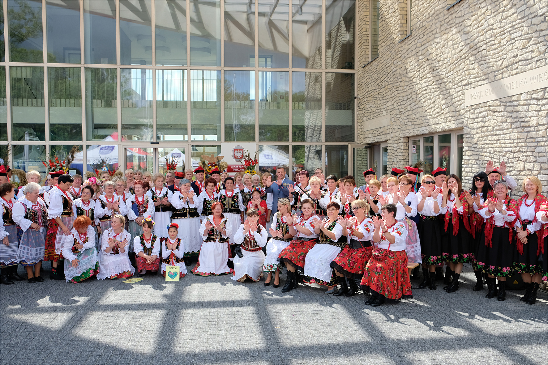 Gdyby ktoś zadał pytanie – Gdzie wczoraj było najpiękniej w Małopolsce? Chyba, nikt nie miałby wątpliwości co do odpowiedzi. Oczywiście tym miejscem były Szyce w Gminie Wielka Wieś. Dziewiąte Wielkowiejskie Targi odbyły się w stylizacji regionalnej. Świętowaliśmy Dożynki, które otworzył gospodarz wydarzenia Wójt Gminy Krzysztof Wołos. Był tradycyjny pokaz wieńców dożynkowych, występy zespołów regionalnych, wszędzie królowały stroje Krakowianek i Krakowian oraz dużo uśmiechu. U pań czerwone korale, kokardy we włosach, a panowie w tradycyjnych czapkach z piórami i, z przypiętymi u pasa pobrzękującymi złotymi kołami. Piękna pogoda wspaniale dopełniła ten dzień i z całą pewnością możemy powiedzieć, że była ona dla nas w tym dniu, niezwykle szczodra w słońce. Przypomnę, że dzień wcześniej padał deszcz, a dziś za oknem ciężkie chmury przysłaniają niebo.