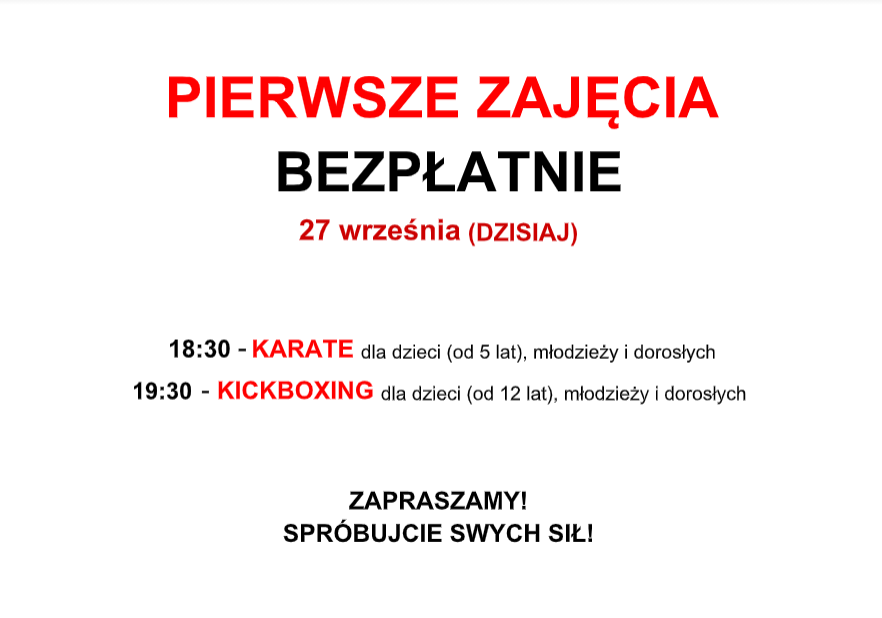🥋 ZAPRASZAMY NA PIERWSZE BEZPŁATNE ZAJĘCIA! 🥋