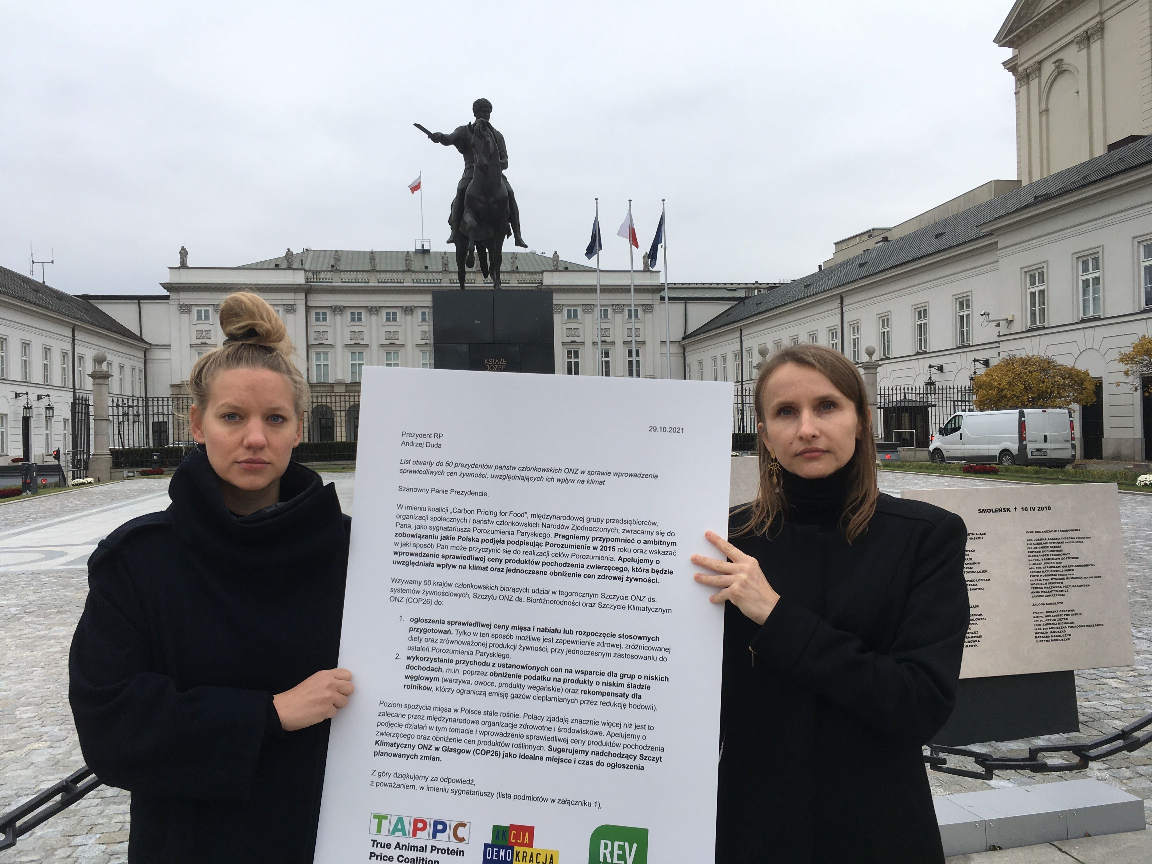 Green Rev Institute i Akcja Demokracja wzywają Prezydenta RP Andrzeja Dudę do wprowadzenia sprawiedliwej ceny produktów pochodzenia zwierzęcego, która uwzględni negatywny wpływ produkcji zwierzęcej na klimat. Apel przed COP26.