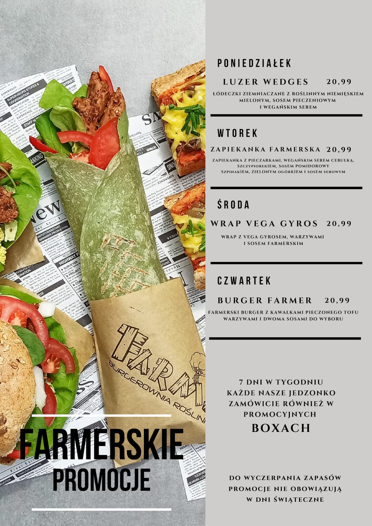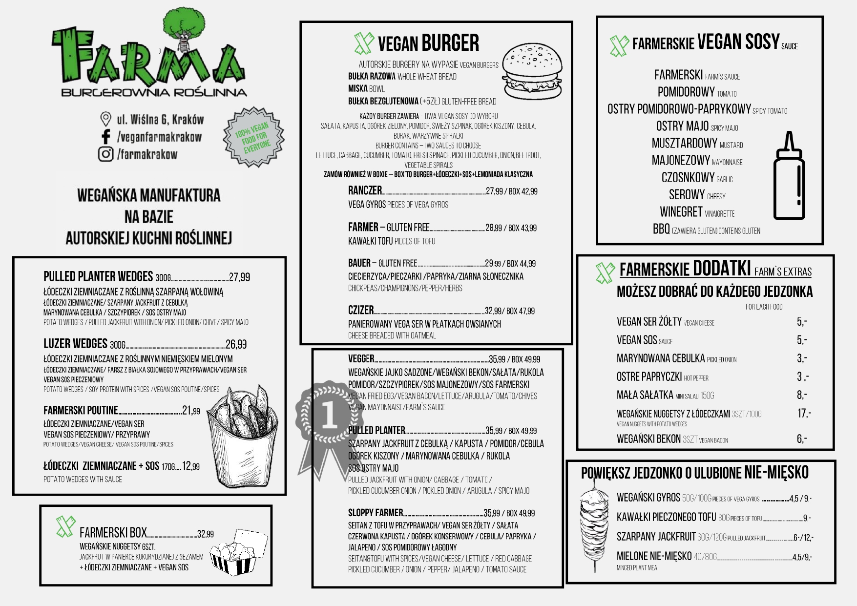 Wegańska restauracja typu fast food serwująca burgery, wrapy, hot dogi, codzienne zupy, łódeczki ziemniaczane i inne dodatki. Napoje obejmują soki, koktajle i koktajle