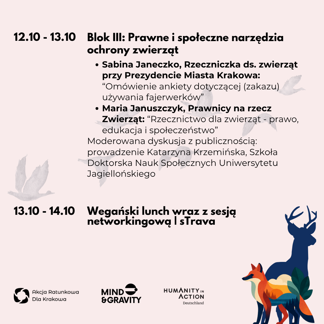 12.10 – 13.10: BLOK III: PRAWNE I SPOŁECZNE NARZĘDZIA OCHRONY ZWIERZĄT