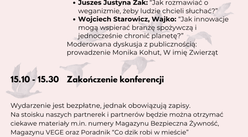 Podczas konferencji będzie można otrzymać materiały naszych partnerów i partnerek m.in. numery Magazynu VEGE, Magazynu Bezpieczna Żywność oraz Poradnik „Co dzik robi w mieście”.