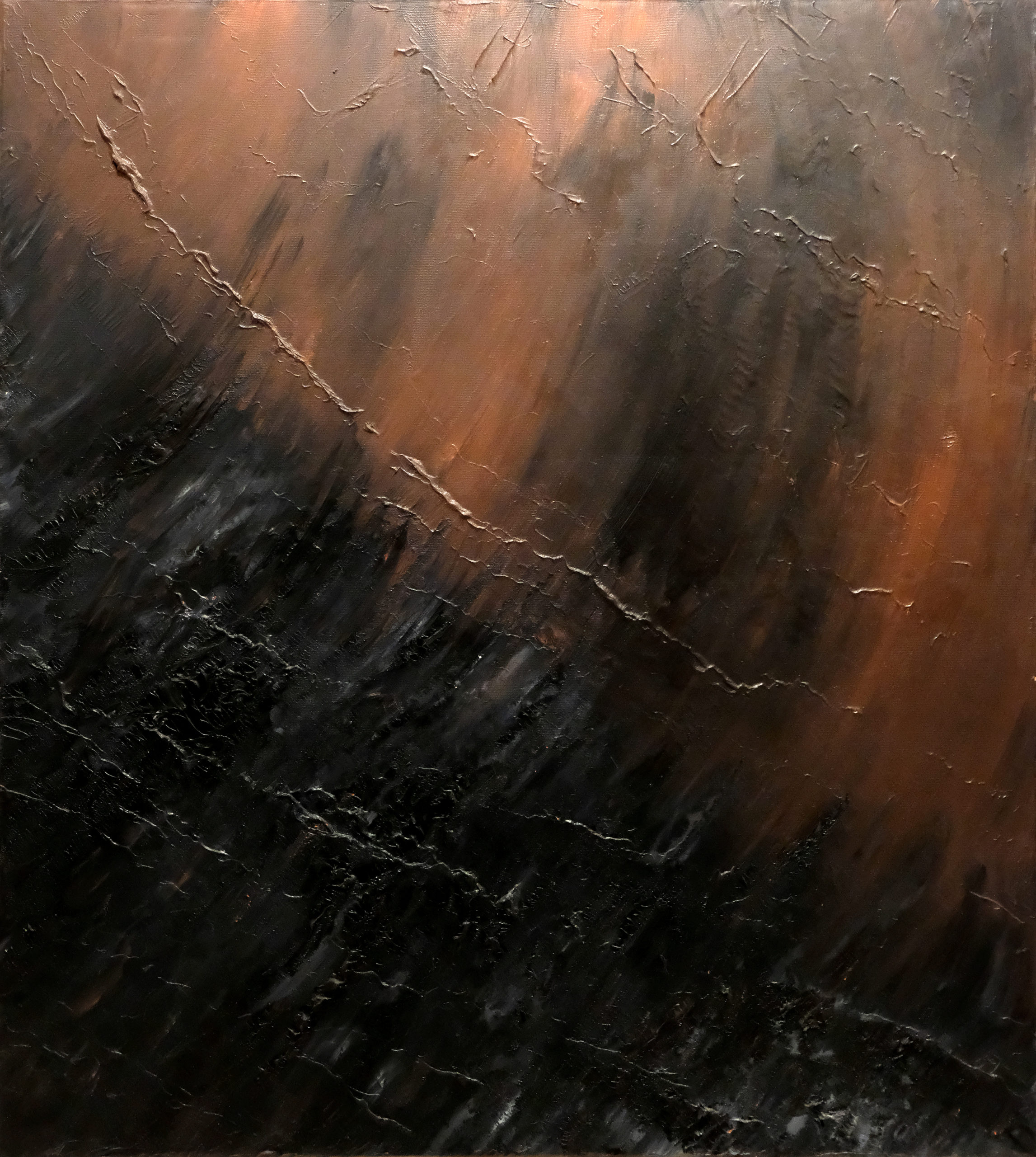 Tekst, obraz olejny „Przenikanie” Janusz Bończak